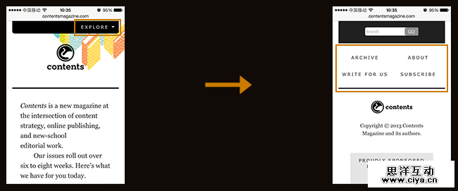 ·内容杂志 网站(点击顶部右侧菜单锚点,页面跳转到底部导航):http://contentsmagazine.com/