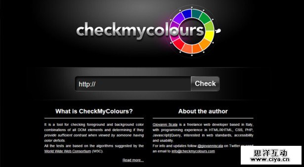但是,当涉及到数字设计,有许多其它网站,你可以前去学习。一个在线工具Check My Colours,可以将任何网站拉进来,检查文本和背景颜色之间的对比度。这是一个优质的资源,用来测试其它网站以及您自己的设计。