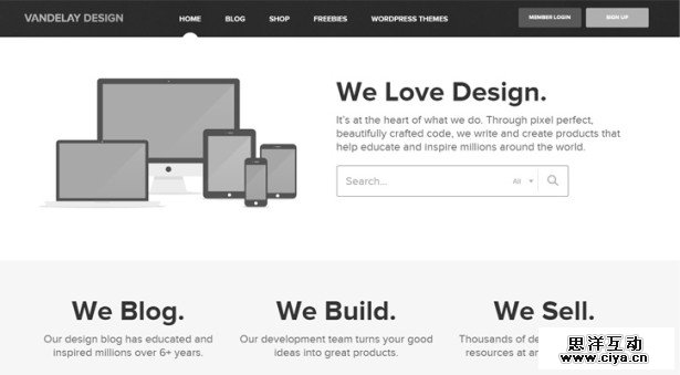 但你会发现整个布局,还有其它的高亮色调。橙色和浅蓝色的出现非常突出,与暗色背景形成对比。要记住在选择一个配色方案时,使用2个或3个不同的色调,因为这样很可能会设计出一个非常棒的网站。