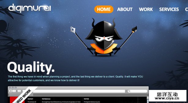 Digimurai是一个更简单但典型的网站。显而易见,网站的设计布局主要集中在暗蓝色的色调中。这给人的印象是,蓝色占主导地位,并控制了大部分的设计。