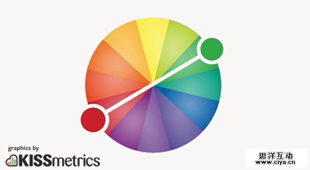 互补色是色轮上相对的两个颜色,它们之间的色彩对比非常强烈。例如,紫色按钮在黄色背景上非常的突出,因为它们是高对比度的配色。当然,这还取决于每一种颜色的饱和度,通过实践来理解是最好的。请记住:对立对比!