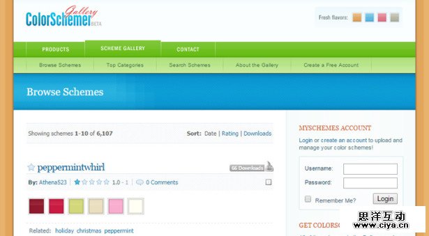 如果你正在寻找预建的配色方案,有很多可用的网站。一种选择是ColorSchemer,它有大量的附加功能,如移动应用程序和桌面软件。但该网站本身是免费的,并提供了用户生成的一个大型的配色方案展示库。
