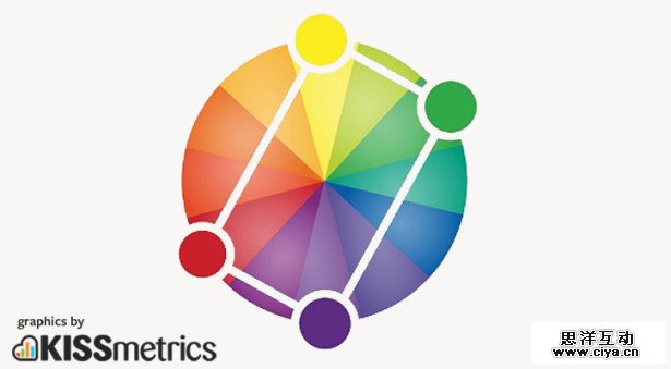 四色式(矩形搭配)是最难以调和的,平衡的适当会使画面显得绚丽多彩。这种配色方案利用两对互补色,它们之间隔两个色格,这四种颜色在色环上的连线形成一个矩形。在设计过程中若让一个颜色成为主色,效果会更加,同时要注意冷暖色的平衡。我不建议在一开始就采用这种配色方案,因为如果没有经验,很难去控制它。但是它在较大的设计中使用会显得非常漂亮,所以它值得被牢记。