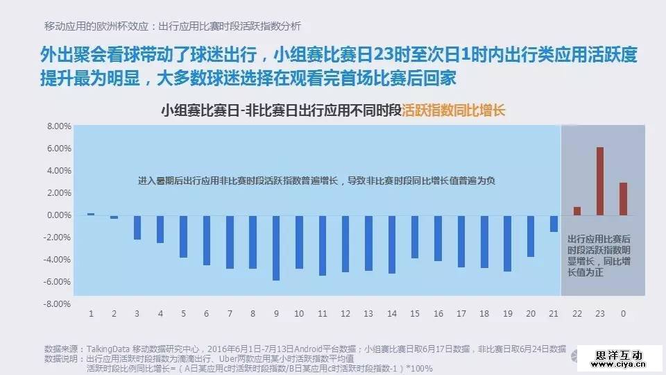 欧洲杯小组赛阶段比赛对外卖应用不同时段的活跃指数影响最为明显,比赛前后的21时-次日0时是球迷点外卖的高峰时段。