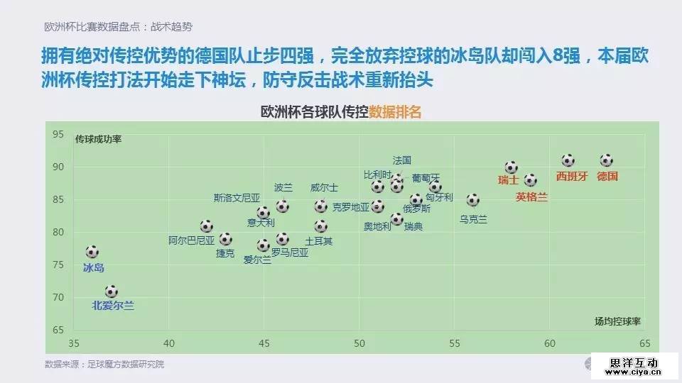 拥有绝对传控优势的德国队止步四强,完全放弃控球的冰岛队却闯入8强,本届欧洲杯传控打法开始走下神坛,防守反击战术重新抬头。