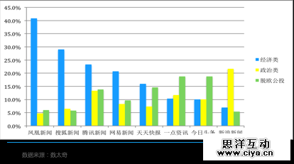 研究发现, 媒体在选择脱欧事件的相关报道时,更偏向经济类文章,占21.8%;其次是公投过程的文章,占12.1%;政治类报道倾向相对较弱,为8.9%。其中,腾讯新闻为了满足不同受众的兴趣点,兼顾经济、政治、公投过程三类报道。凤凰新闻、搜狐新闻明显偏向于经济影响的内容,而新浪新闻更侧重于政治类内容(图6)。