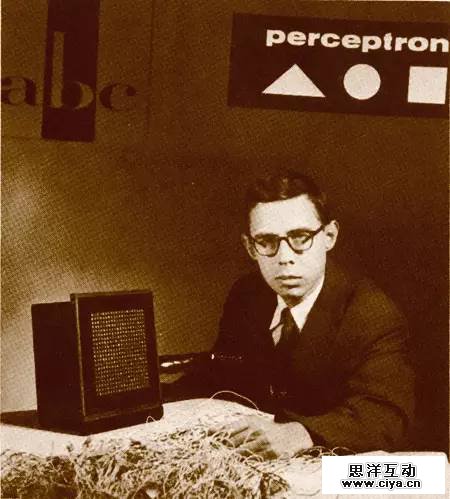 神经网络研究的后一个大突破是1957年。康奈尔大学的实验心理学家弗兰克·罗森布拉特在一台IBM-704计算机上模拟实现了一种他发明的叫作“感知机”(Perceptron)的神经网络模型。这个模型可以完成一些简单的视觉处理任务。这引起了轰动。罗森布拉特在理论上证明了单层神经网络在处理线性可分的模式识别问题时,可以收敛,并以此为基础,做了若干“感知机”有学习能力的实验。罗森布拉特1962年出了本书:《神经动力学原理:感知机和大脑机制的理论》(Principles of Neurodynamics: Perceptrons and the Theory of Brain Mechanisms),这书总结了他的所有研究成果,一时成为“吃啥补啥”派的圣经。罗森布拉特的名声越来越大,得到的研究经费也越来越多。国防部和海军都资助了他的研究工作。媒体对罗森布拉特也表现出了过度的关注。毕竟,能够构建一台可以模拟大脑的机器,当然是一个头版头条的抢眼消息。此时的罗森布拉特也一改往日的害羞,经常在媒体出镜,他开跑车、弹钢琴,到处显摆。这使得另一派的人相当不爽。