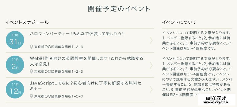 也有其他的,能在网站上看到活动提醒的日历。日历想要便利,需要大做文章。这个网站由于是一个月举办3到4次活动,如果反过来来看日历,在设计的时候会浪费掉一定的空间。