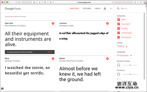 世界上数量众多的免费字体中,最让人用得放心的我想就是Google字体了吧!字体精心设计、富有美感并且完全开源,可以放心大胆地免费使用。