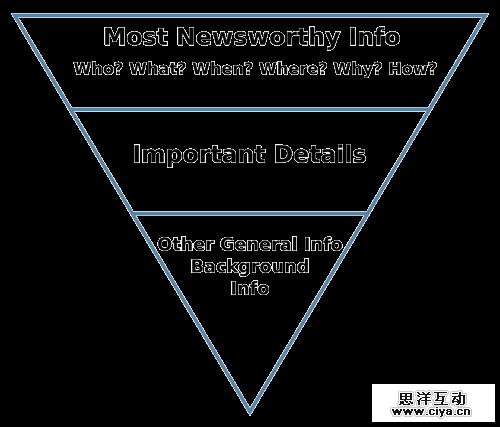 在设计中建立视觉层次结构的方式与新闻记者在写作中的方式一样——倒金字塔的创作方式。最重要的信息在第一段或者前两段。主要包括谁,在那,什么时间,干什么,为什么,怎么做。它会告诉你你需要知道的一切。