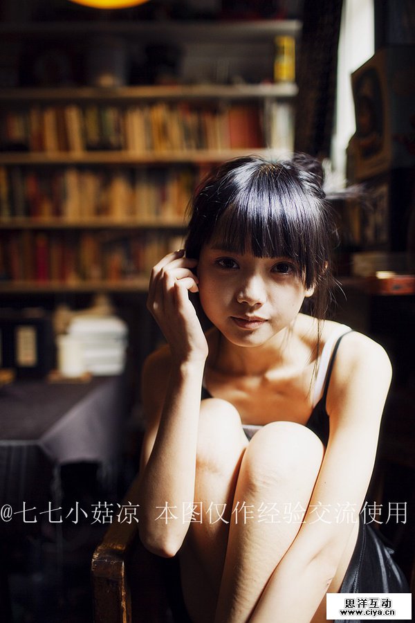 这样的拍摄位置有两个好处: 1、杂乱的背景被黑暗吞没从而被忽略,使画面干净突出女友。 2、女友身上光线均匀明亮,处于画面的视觉中心。 看,也是一种讨巧简便的拍摄方法,特别适合杂乱的屋子。同样的,女友身上的曝光强弱可以通过让她移动位置来进行调节。以不过曝为宜。 下面我们再来看一个对比,同样的一扇落地窗,通过你位置的变化从而产生的三种不同的光影感受。