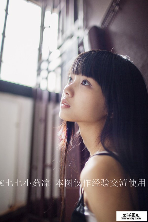 如上两图所示。男友们依然可以采用AV模式,光圈不用放的很大,2.2到2.8都是不错的选择。如果窗外是阴天,女友可以离窗户近点,如图1,如果窗外太阳很大,那女友可以适当远离窗外一些,如图2。如果怕脸太暗,可以把头稍稍侧转,如上图所示,脸部的曝光会舒服很多。