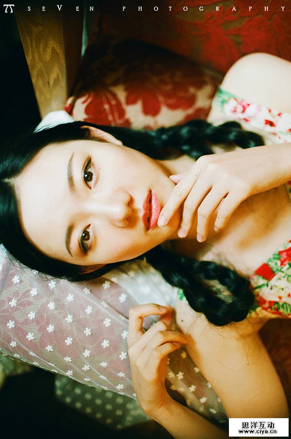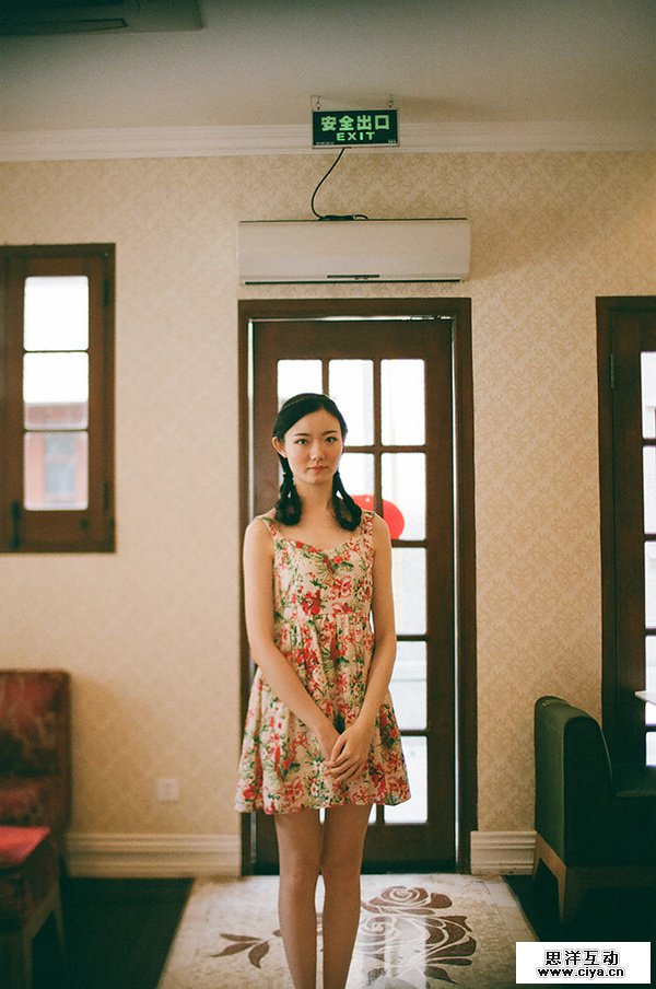 像这样,大面积的花纹和色彩让画面干净又特别,如果女友有状态就多拍些正面,如果表情难抓,就俯拍“全民小脸”pose吧,这时候让她抬头看你也效果不错哟~