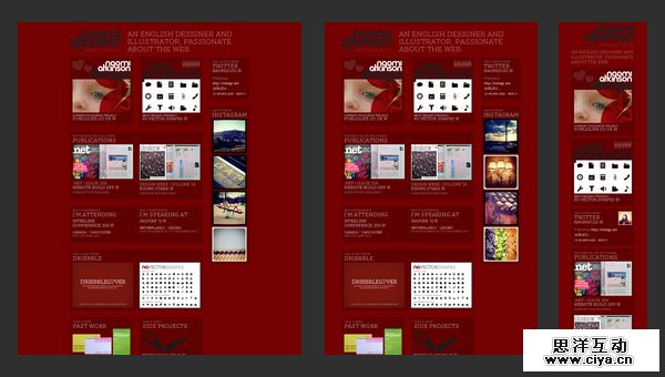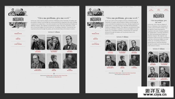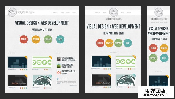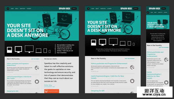 虽然网页很符合响应式规律,但是乍一看似乎网站有一点复杂,混乱的外表让人觉得难以处理,实际上解决方案非常原始。设计师已经明智地把所有信息分割成了3列,并根据屏幕的大小,而让数量增减,当屏幕变小时,布局从3列慢慢地递减至2列直到只能显示一列为止,这样就能有秩序的展现你的所有信息。