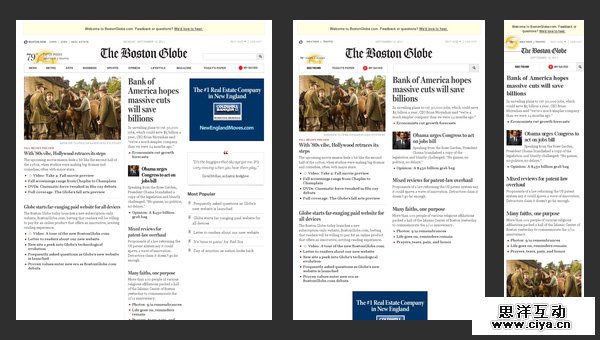 《波士顿环球报》是一个很好的例子,是一个经过用心规划的新闻类响应式网站。网站采用传统的方法,帮助那些需要运营自己经常更新的在线杂志的用户们,让他们能更好地使用网站功能。