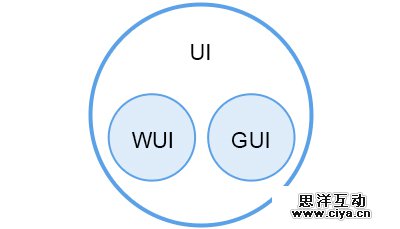用户界面(User interface) ,用户界面是一个比较广泛的概念,指人和机器互动过程中的界面,以手机为例,手机上的界面都属于用户界面。我们通过这个界面向手机发出指令,手机根据指令产生相应的反馈。设计这套界面视觉的人称呼为UI设计师。在设计师领域,(如图1-1所示)在PC端从事网页设计,我们称呼WUI(Web User Interface)设计师或者网页设计师。在移动端,从事移动设计的称呼为GUI(Graphics User Interface)设计师,因为移动端会有大量图形用户界面设计。在公司中,人们并不会很清楚的区分这两种职能,都统称为UI设计师。因为他们产出的都是界面,都需要对产品的界面视觉负责。
