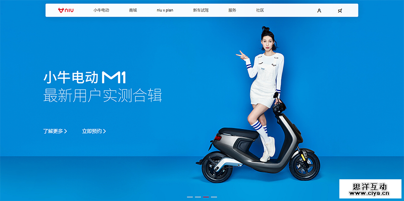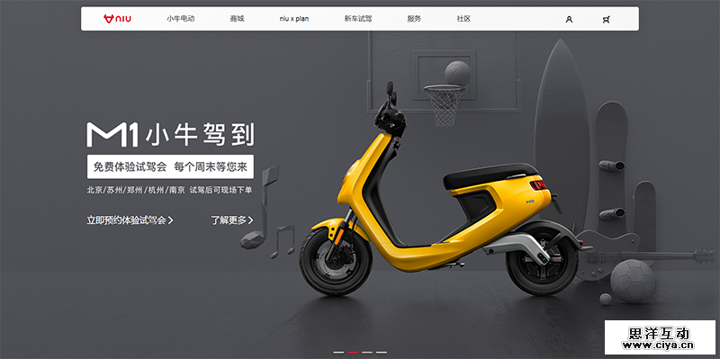 耐克和小牛电动车的页面设计的颜色选择都是使用了这个方法,并且小牛为是让画面不单调,背景使用了素色黑白灰的一些图形元素,这样既让画面丰富起来又不会使颜色过多而显得杂乱。