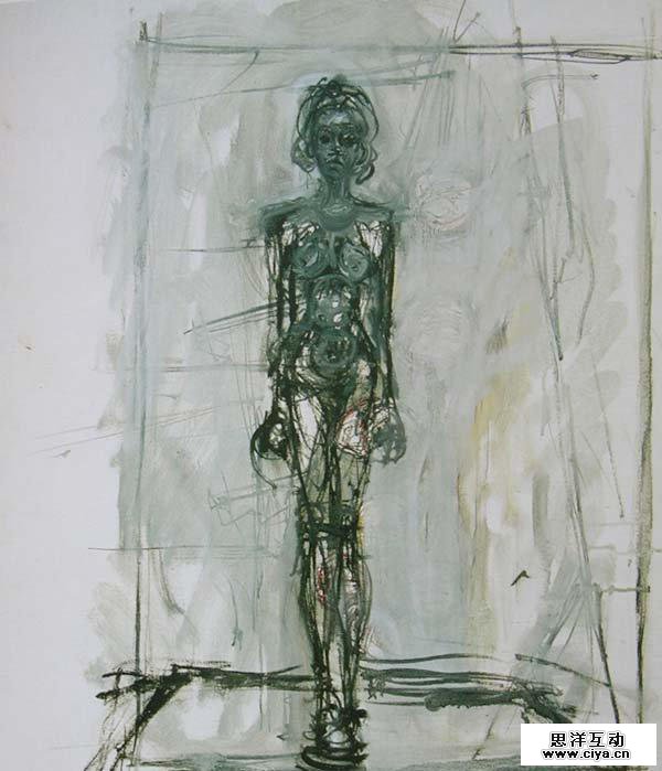 贾科梅蒂的作品充满了实验性,完全的抽离具体的绘画法则,拒绝美,用触目惊心的焦躁与混乱构建起一个完全属于艺术家的世界。他的作品也传递压抑,但不是如上面画家那般的安静、妥协、无力的压抑,他的压抑是平地惊雷式的炸裂,却不让观者听到一丝声音,诡异的无声,无声的爆炸,爆炸后的徒劳;