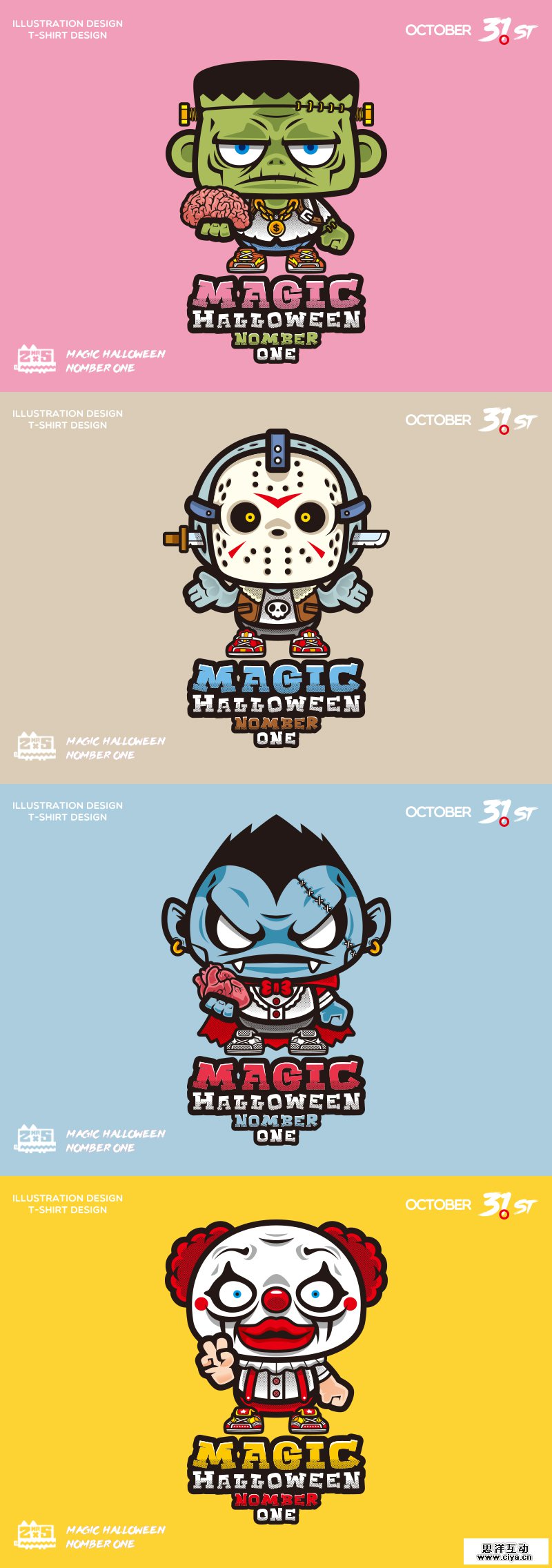 这回的插画内容结合了很多万圣节常出现的妖怪,还有自己比较喜欢的怪物。