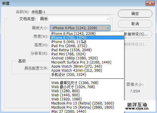 新建图层选择画板(ps cc 2015才有的功能),选这iPhone6的尺寸大小。