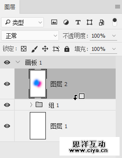 渐变颜色图层绘制好后,在图层与编组之间按住【Alt】键进行图层与编制之间的嵌套,让渐变的颜色嵌套到下面的编组上。从而完成以下的效果。