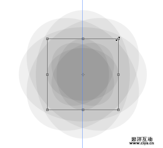 选择图层编组,Ctrl+J复制新的编组。选择复制的编组Ctrl+T进行变换,缩放的时候后按住shift+Alt键拖动边缘的方块对图形进行进等比缩放。将图形比例调整到合适的大小,让形状显得更有层次和空间。