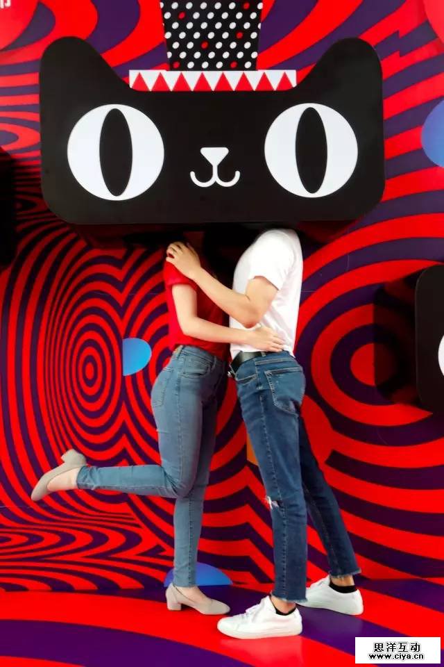 我们将双11新的天猫形象为主元素,结合欧普风格,户外的装置,可以让人带上猫头拍照互动分享,参与性更高,这样的装置不仅吸引了我们的员工主动自发的参与,也吸引了很多来阿里的访客拍照留影,形成一次很好的二次对外传播。如此魔性的大长腿喵,叫人欲罢不能啊,这样的喵,能给我来十打吗?