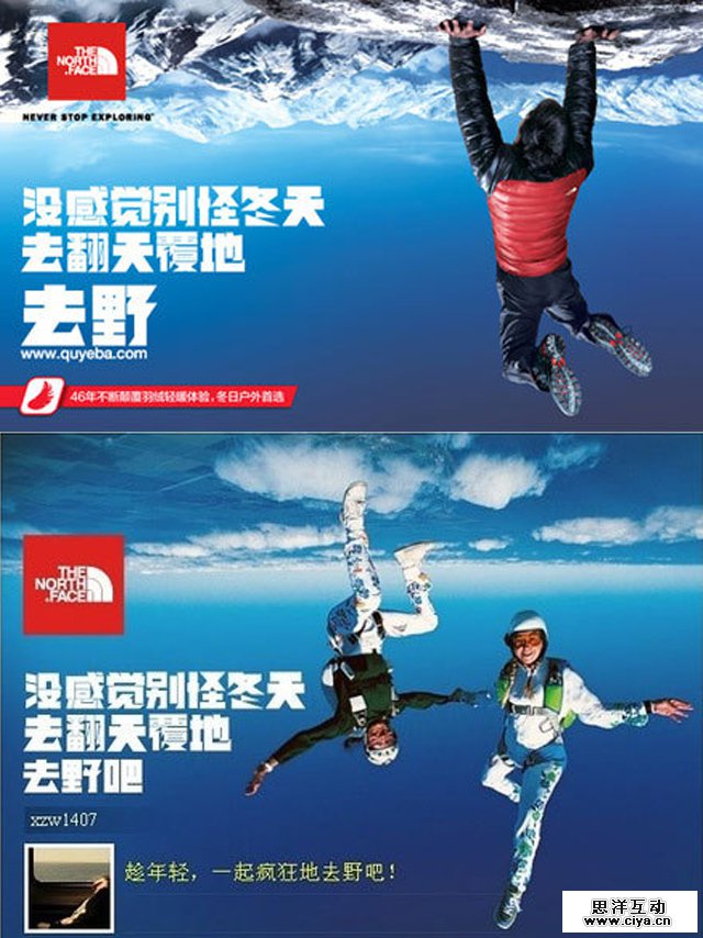 运动着的东西总是比静的东西更吸引人的注意,其实对于动物来说也是如此,例如蛇、青蛙等动物只能注意到会动的东西,静止的东西会直接被忽视。对于视频来说运动当然不是问题,但是平面设计是无法动起来的,不过真正的运动和动感是两回事,虽然动不了,但我们仍然可以通过一些小技巧制造动感,例如:把物体掷在空中、把多个物体按一定的运动轨迹摆放、加入一个正在运动的人或者动物,又或者利用视觉矛盾制造动感,都可以让平面的设计“动起来”。