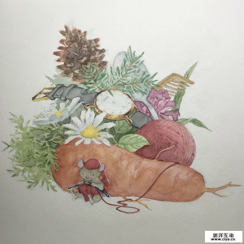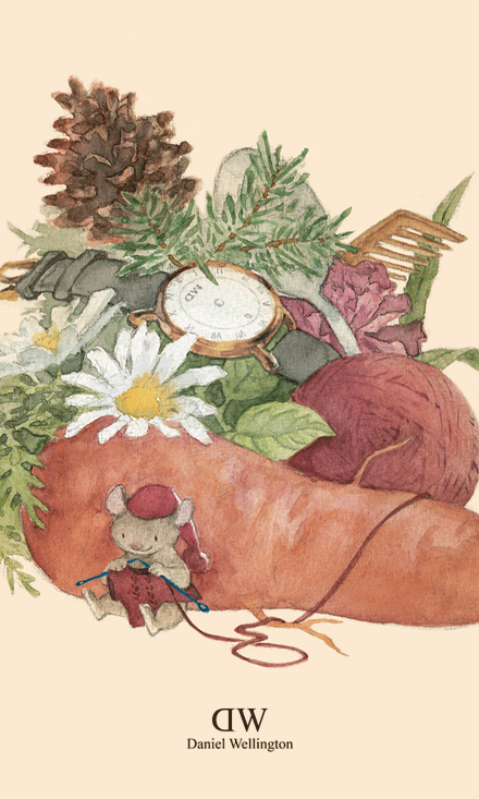 7.最后才画主体的小老鼠,红帽子红毛衣都是它一针一线织出来的,当然蓝色的毛线针是从表盘上拆下来的~