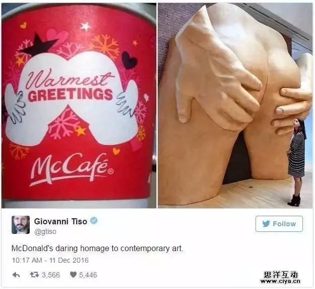 就比如最近麦当劳推出的2016年圣诞版咖啡杯设计: