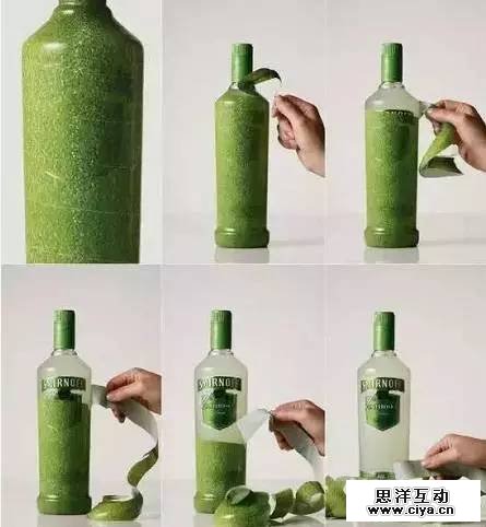 在举一个几年前我就超级喜欢的果汁酒类包装设计,印象中是外国JWT做的一个包装案例,通过揭开包装一圈一圈的“果皮”,来模拟真的在削一枚水果般有趣。传达产品的新鲜甜美。