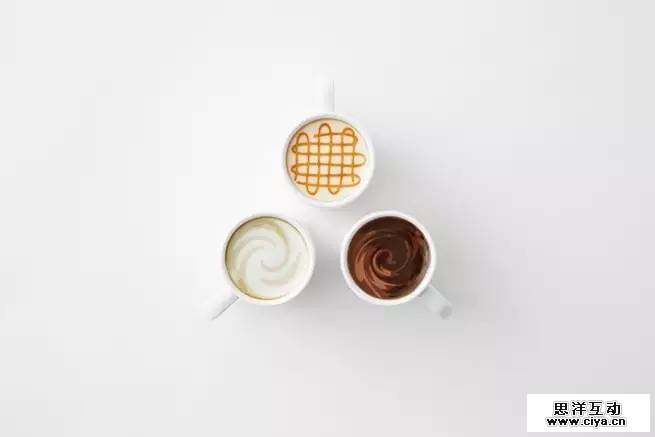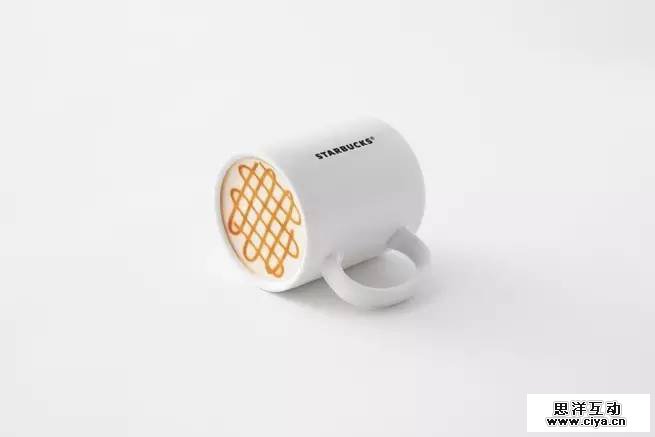 将星巴克杯子底部设计成“拿铁”,“摩卡”等图案。当把杯子洗干净放置不用的时候,倒过来的时候依然像盛满咖啡一样。