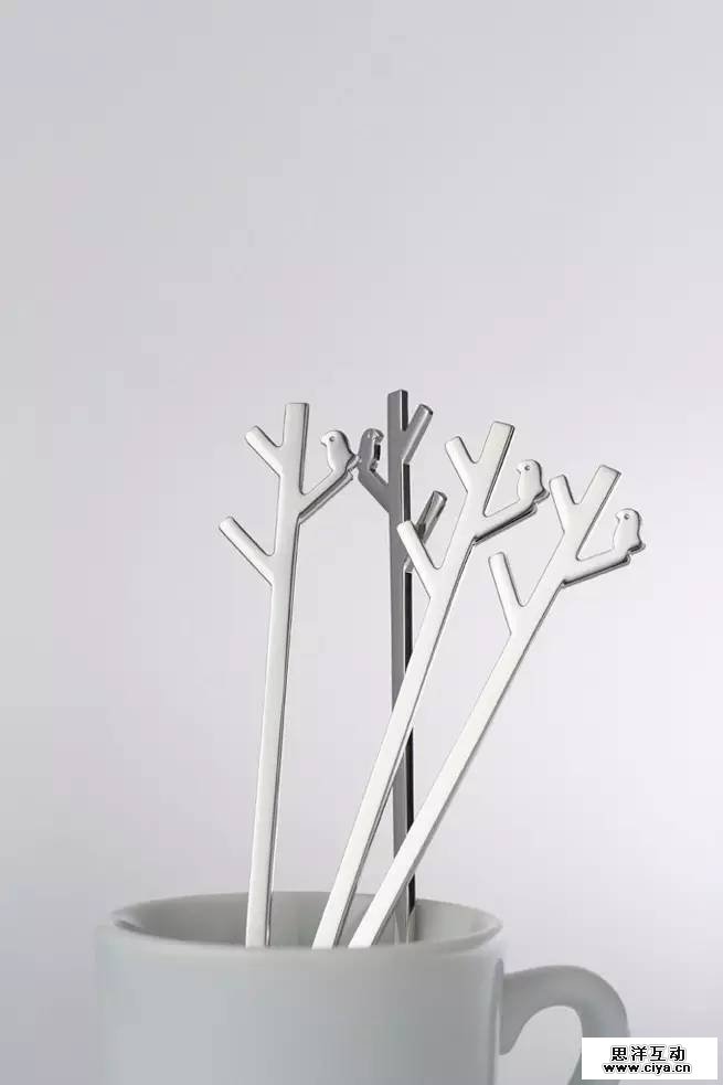 勺子无非就有使用时的状态和放置时的状态,佐藤的思路是勺子的休息时间可以像树杈一样可爱。