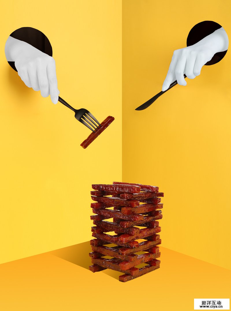 客户想拍出现在市面上独一无二的猪肉脯,提供了9款产品,每个都要一张创意主图。一直就想尝试新的方式去拍食物,