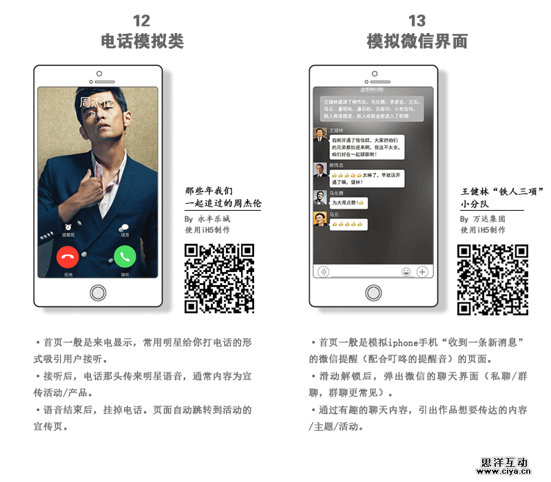 模拟类的H5曾经特别火,主要形式是各种设备模拟,如模拟来电、微信聊天界面、微信朋友圈、手机界面、各类APP等。模拟类H5的内容通常跟明星名人有关,抓住的是用户与明星、名人静距离互动的新鲜感。