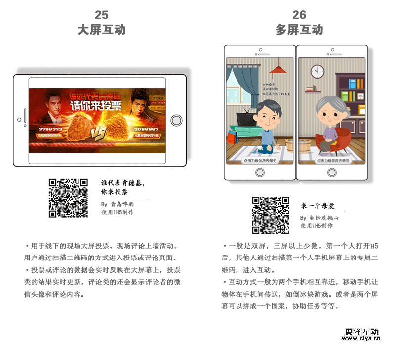 跨屏类H5的互动不仅是用户与H5内容的互动了,而是提高到人与人、商家与消费者的互动。它可以是双屏互动,用户找个小伙伴一起玩。也可以是线下活动互动利器,让观众与舞台进行互动,比如大屏投票,评论上墙等,这可是春晚也用过的招数。