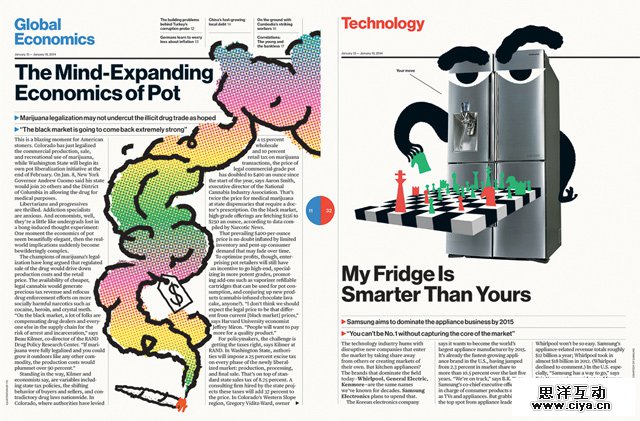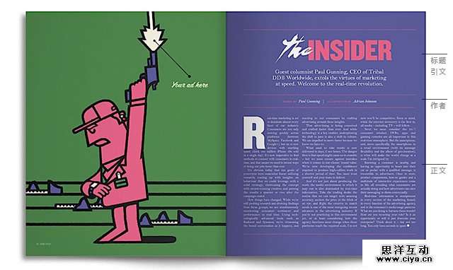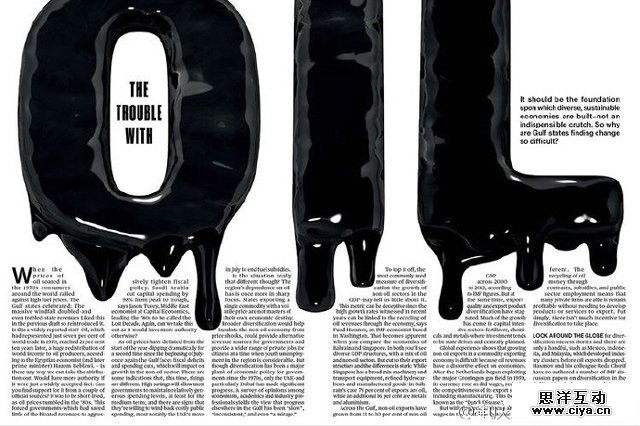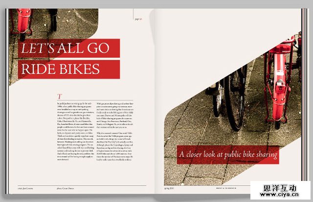 ▲上图的版面中不仅运用了文字绕排,同时还用了大小对比、稀疏对比、留白等技巧,有点叼。