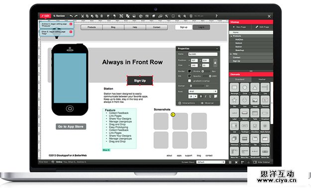 HotGloo是另外一个值得推荐的原型/线框图工具,你可以通过客户端向你的客户和同事共享你的设计稿的预览图,这也使得交流和反馈更加灵活便捷,无需代码。HotGloo其中内置了50多款不同的UI组件和预制的UI库。