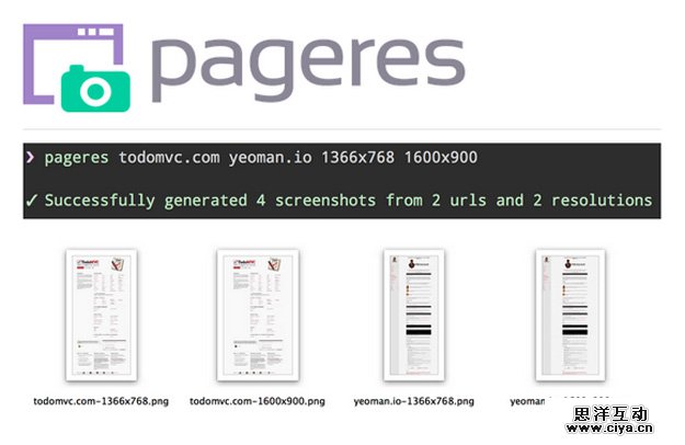 Pageres 是一款命令行工具,用于生成网站不同分辨率截图。Pageres专注于尺寸控制,所以稍加调整代码就可以生成响应式网站的截图。这款命令行工具可以一次设定多个参数,一次到位生成结果。