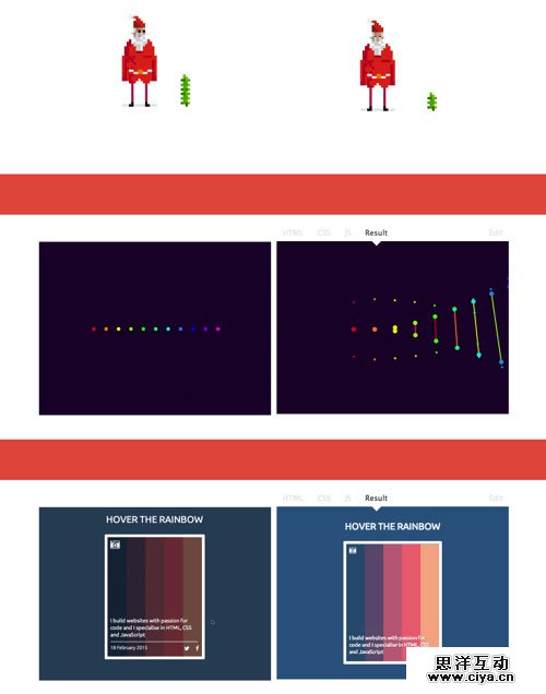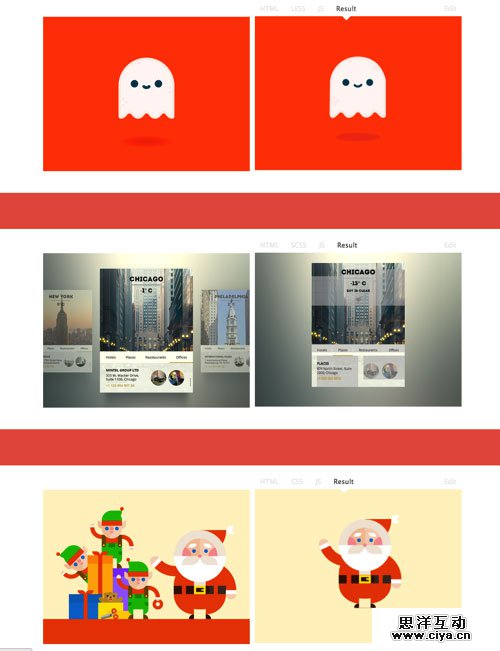 该网站专门分享CodePen上的JS/CSS/HTML/片段代码,而这些代码都是来自Dribbble的Gif动效及漂亮的界面截图,并用代码呈现出来,实在惊人。