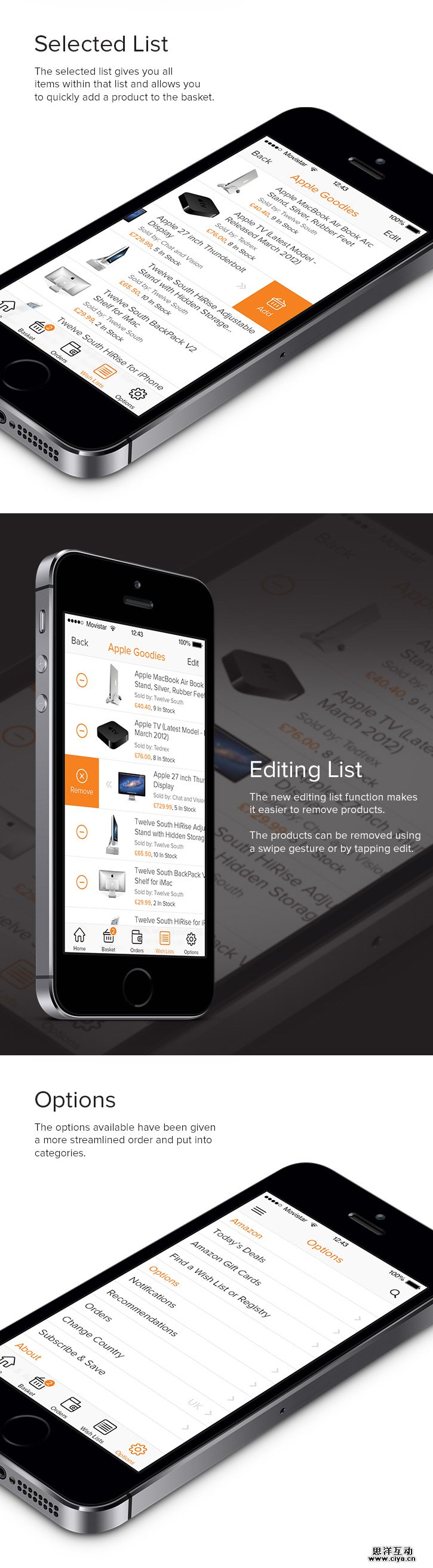 这是针对Amazon的iOS7客户端的深度修改,登录和注册更加渐变,留白的使用令页面更加整洁,其他的功能也进行了相当的优化。