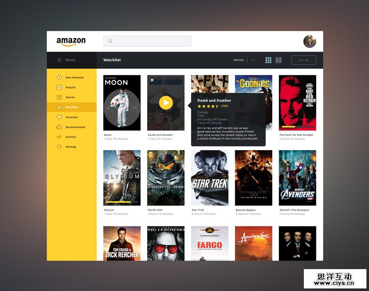 Cipriano 针对Amazon的 Fire TV 的流媒体页面进行了重新设计。重新设计的页面和原页面稍微相似,但是设计师将Amazon极具识别度的橙、白、灰糅合到了一起,视觉上更有特色。侧边栏的设计让 网页更易于浏览。