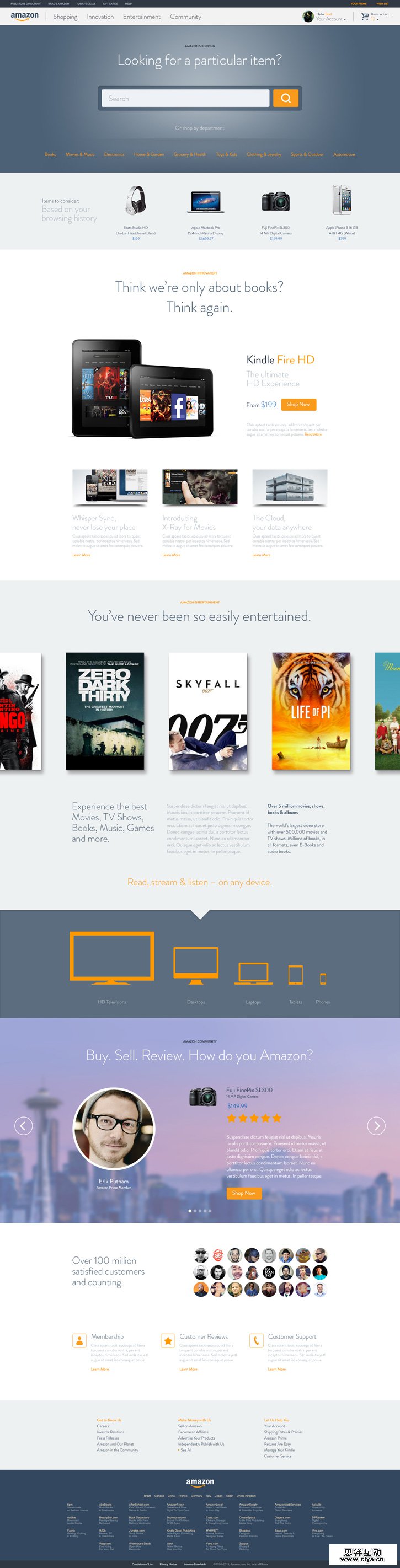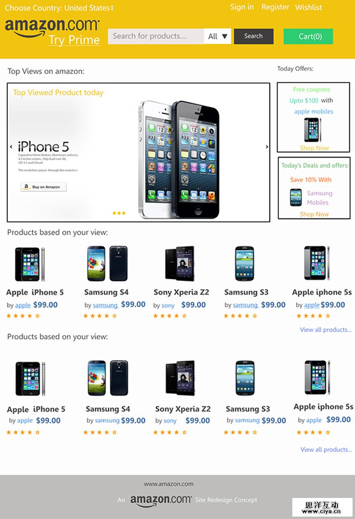 从美国到中国,从德国到日本,世界各地的用户都通过Amazon网购各类商品,它也时时刻刻经受着用户的考验。从不同的需求和使用习惯的角度来考量,几乎每个用户和设计师心中都会有着不同的Amazon重设计方案。也正是因此,近几年设计师们不断地为Amazon进行再设计。有的设计师仅仅只是为网页进行小幅调整,而更多的设计师选择了大刀阔斧的修改。接下来,我们就看看这22位设计师心中的Amazon长啥样吧!