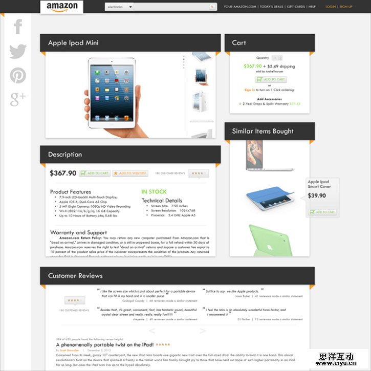 Benedetti 对 Amazon的产品页的设计非常独特,完全不同的布局、配色以及更加易用的按钮,给人愉悦的视觉体验。