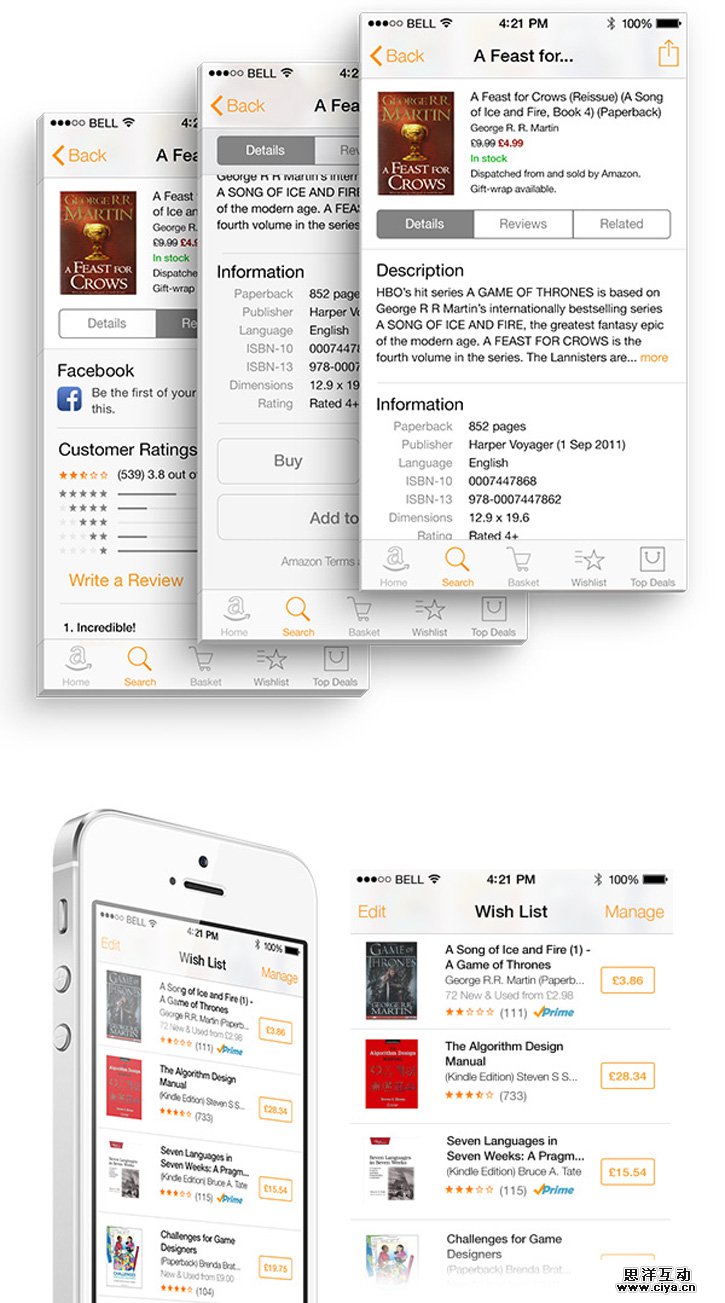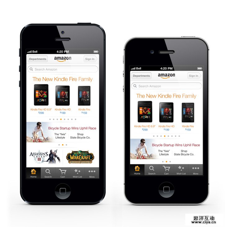 这一Amazon iOS客户端还沿袭了iOS6的拟物化风格,不过整个页面比原版的更加整齐、平衡。