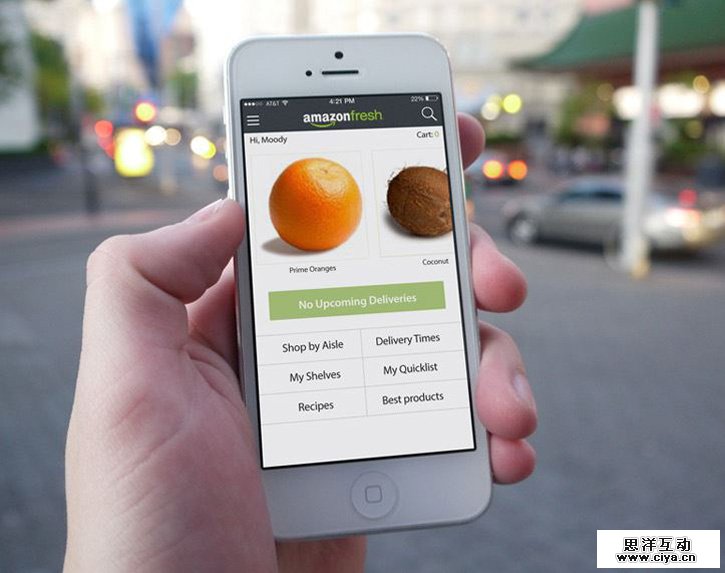 Elagouz 选择了Amazon Fresh 这个部分作为重设计的对象,保留了食谱和寻找新鲜食材、送货上门的功能。
