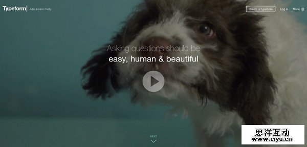 视频和图片巧妙地平铺在Typeform的首页上,配合着沉浸式的幽灵按钮,看起时尚而悦目。漂亮的字体样式使得页面的关键信息更加突出。