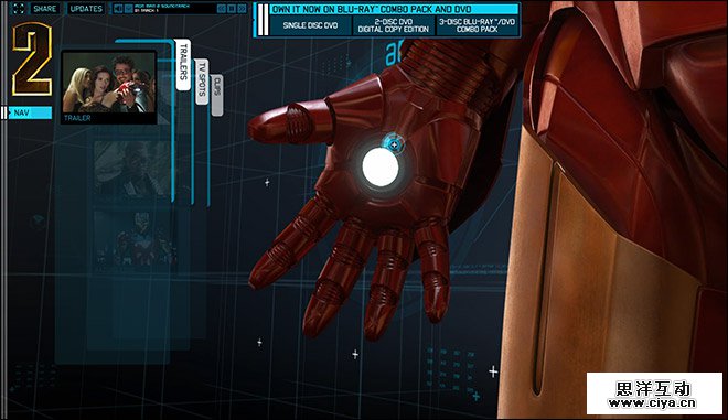 Iron Man2《钢铁侠2(2010)》的官网现在看起来都让人心绪澎湃,金属的质感配合科幻场景,英雄气概十足。