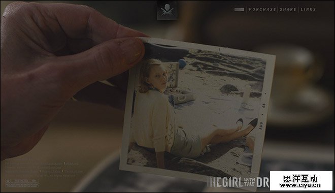 The Girl with Dragon Tatton《龙纹身的女孩(2011)》的网站有一种暗黑系女孩的细致感,不规则的导航栏,不统一的字体,非常特别。