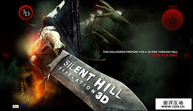 Silent Hill《寂静岭(2012)》的官网展现了3D的效果,随着用户在页面上发生动作,其上的不同的图层会做不同步的反应,很是迷人。